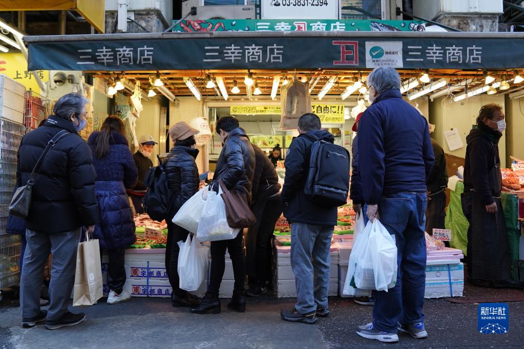 12月28日,人們在日本東京阿美橫町購買促銷商品。