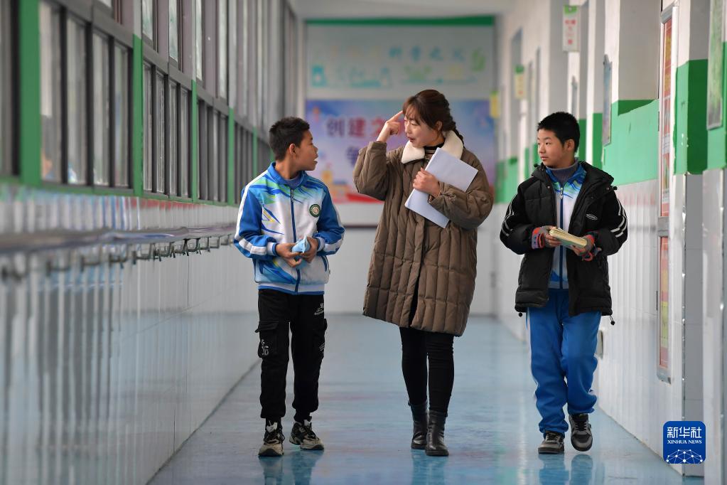 在江西省宜春市特殊教育學校,樊海艷和學生們準備去教室上課(12月28日攝)。