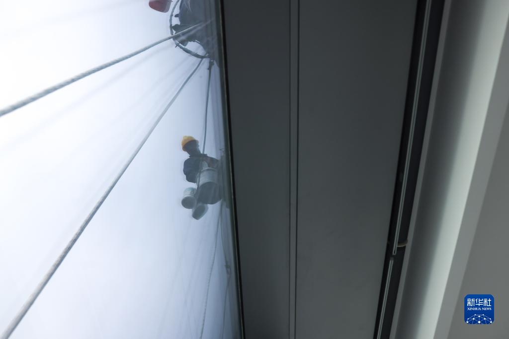 近日,高度335米的貴陽國際貿易中心雙子塔迎來今年的首次清洗。8名“蜘蛛人”從塔巔垂直而下開展高空作業,將耗時20天左右才能完成清洗。
