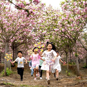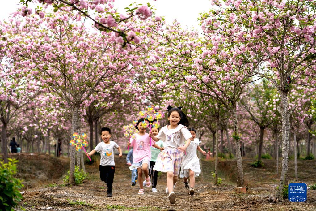 3月19日,在四川省眉山市仁壽縣方家鎮(zhèn)曲江社區(qū)的櫻花園里,小朋友們?cè)陂_心玩耍。