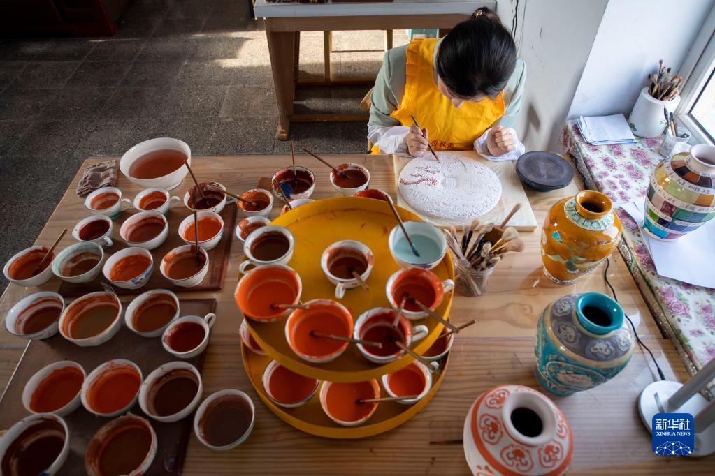 3月23日,在山西省陽城縣沙坡村,喬琳在制作琺華。新華社記者 楊晨光 攝