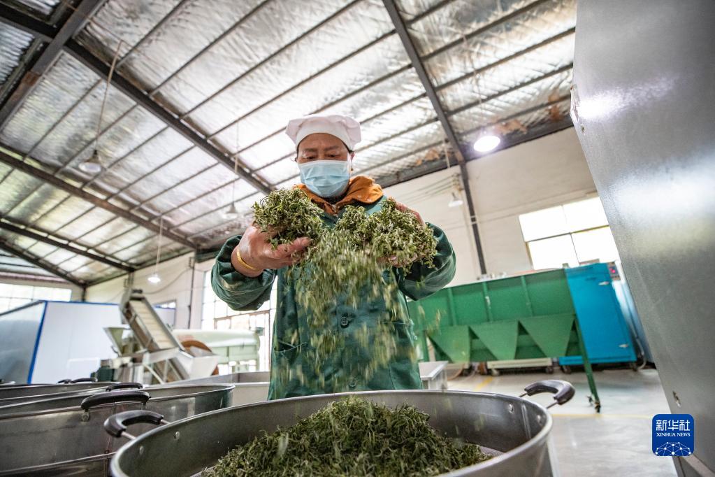 3月23日,在重慶市秀山土家族苗族自治縣洪安鎮一家茶葉加工企業內,村民手工翻炒春茶。