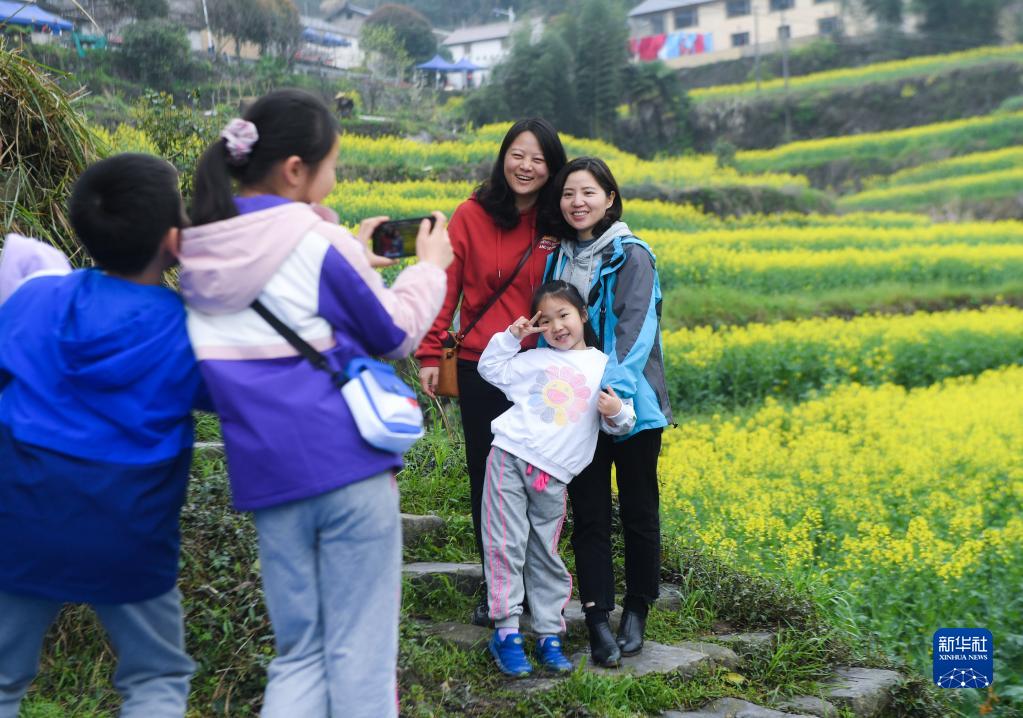 當日,浙江省建德市乾潭鎮胥嶺村開啟首屆“花朝節”,市民和游客在胥嶺村觀賞油菜花,體驗胥嶺古道和“花朝市集”。