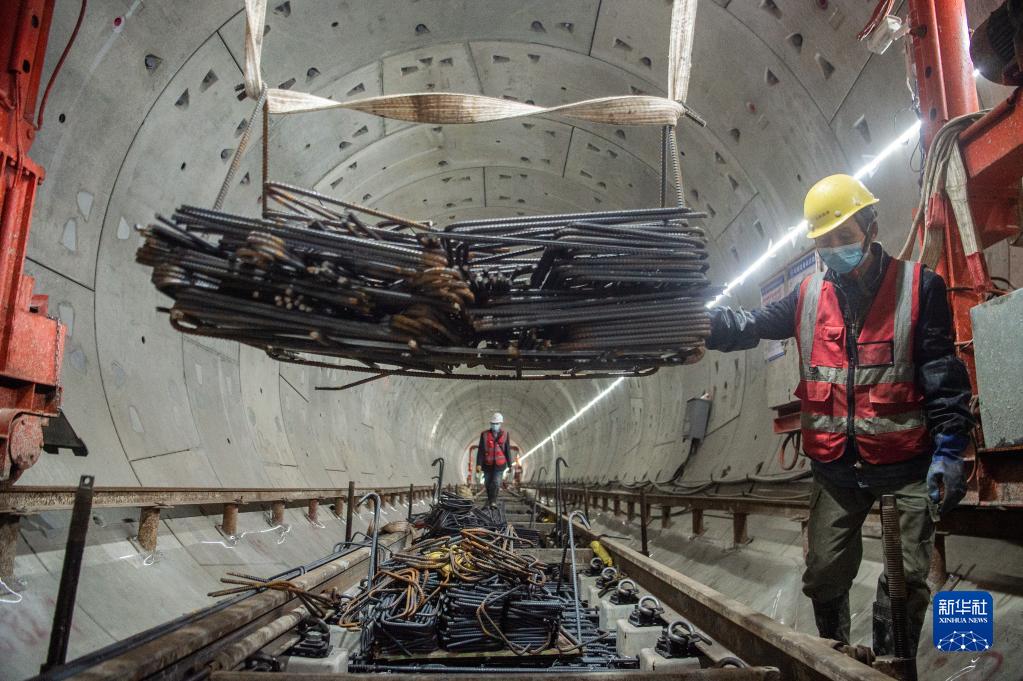 近日,在武漢地鐵前川線工程現場,工人們抓緊施工。前川線是武漢地鐵7號線北延線路,起于前川城區黃陂廣場,止于園博園北站,是武漢市重要的客運走廊之一。
