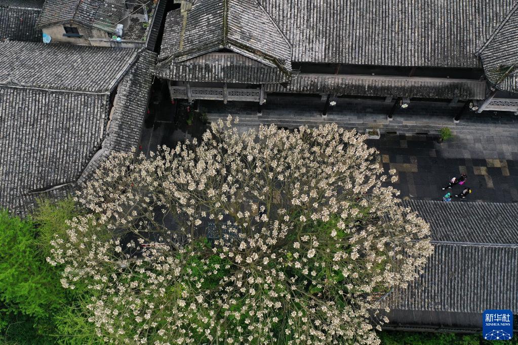 4月4日,游客在重慶市黔江區(qū)濯水古鎮(zhèn)游玩(無人機照片)。
