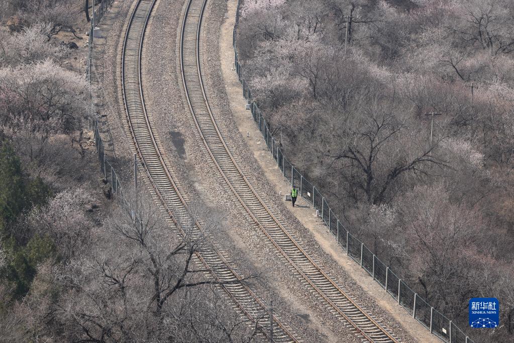 北京市郊鐵路S2線的列車穿梭于居庸關長城腳下的花海,是春日里的一道風景。北京鐵路公安處安排轄區民警加強值守,確保花海列車和游客的安全。