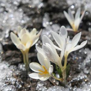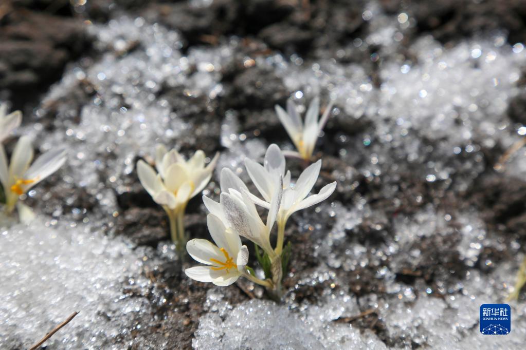 進(jìn)入4月,位于新疆伊犁河谷上的昭蘇草原積雪逐漸開始消融,頂冰花在涓涓雪水的滋養(yǎng)下悄然綻放。