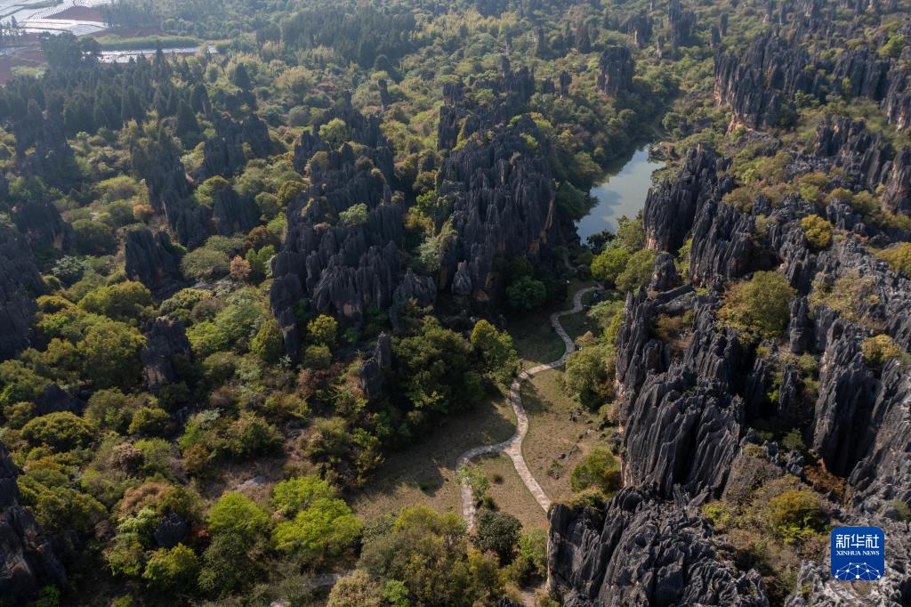 這是4月10日拍攝的乃古石林(無人機照片)。