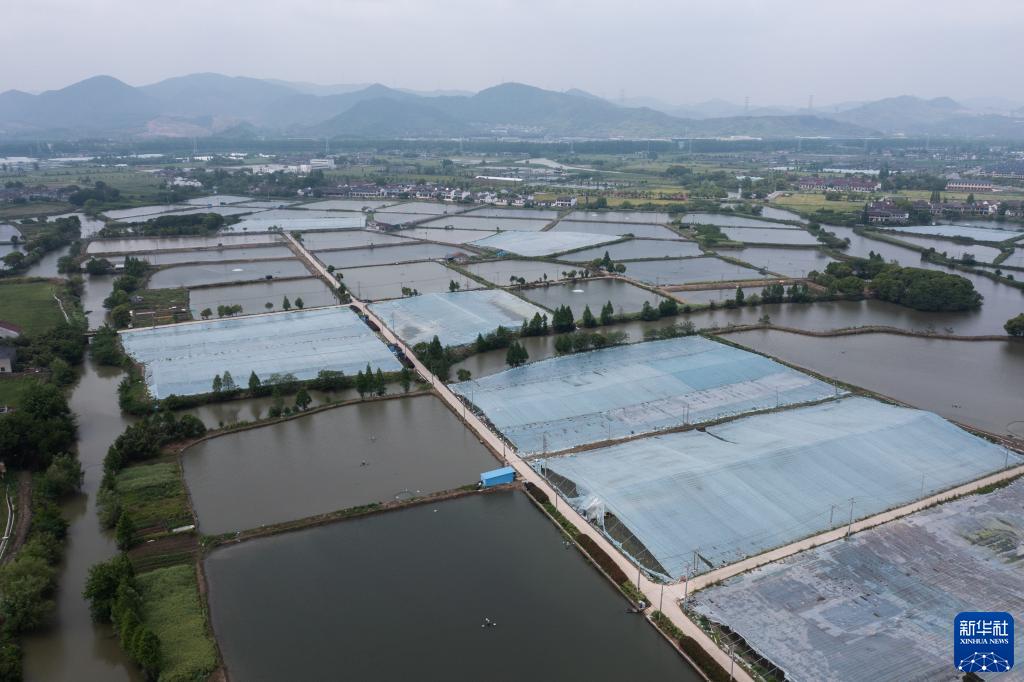 4月27日,空中俯瞰湖州市吳興區(qū)東林鎮(zhèn)保健村湖旺水產(chǎn)基地(無人機(jī)拍攝)。