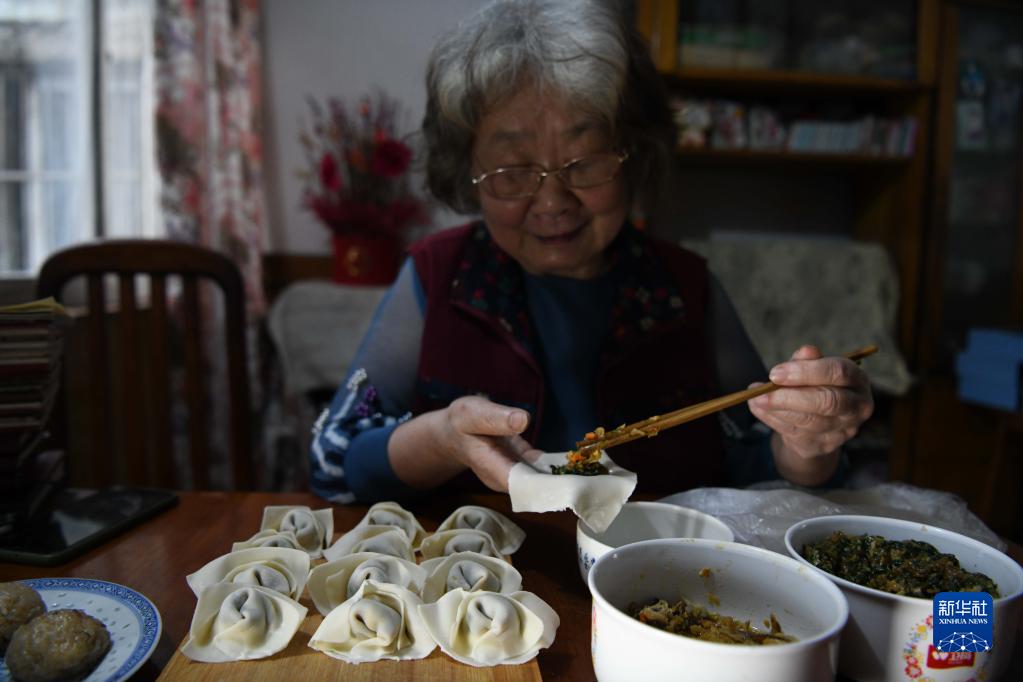 5月18日,張愛蘭在安徽蕪湖的家中包餛飩。