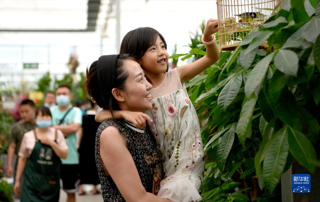 5月29日,市民在西安際華3511文創科技園內的花市休閑。