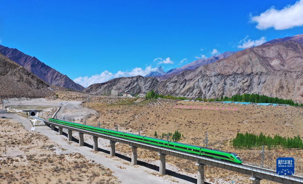 4月14日,復興號列車行駛在西藏朗縣境內。