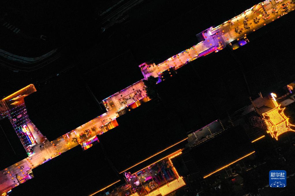 游客在重慶陶然居大觀園新國潮坊游覽、體驗(yàn)(6月1日攝,無人機(jī)照片)。