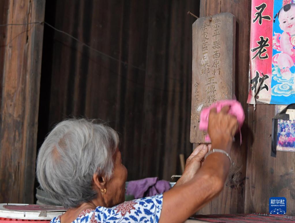 在江西省樂(lè)平市,今年85歲的程大妹在家中擦拭抗美援朝犧牲烈士王傳勝的牌位。王傳勝1950年參軍,作為未婚妻的程大妹一直等著他回家完婚,但是卻等來(lái)了王傳勝犧牲的消息。多年來(lái),程大妹一直保留著王傳勝犧牲時(shí)留下的遺物。2021年,程雪清幫助她找到了位于朝鮮開城的中國(guó)人民志愿軍烈士陵園的合葬墓位置(7月6日攝)。