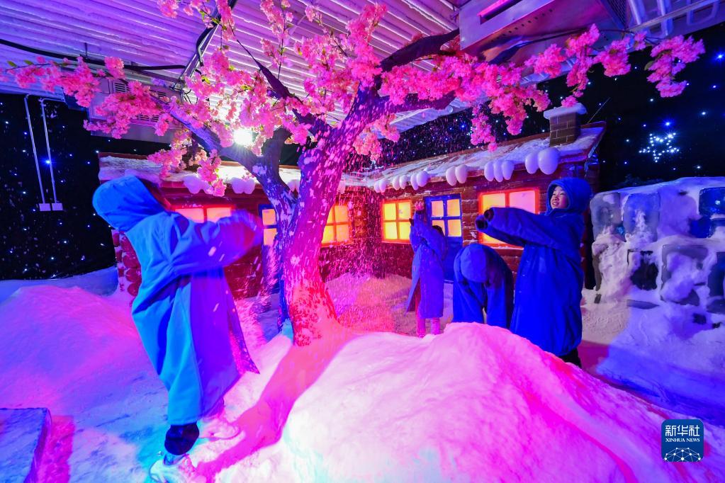 入伏首日,人們來到山東省青州古城景區(qū)室內(nèi)冰雪世界,賞冰雕、打雪仗、滑雪圈,樂享清涼。