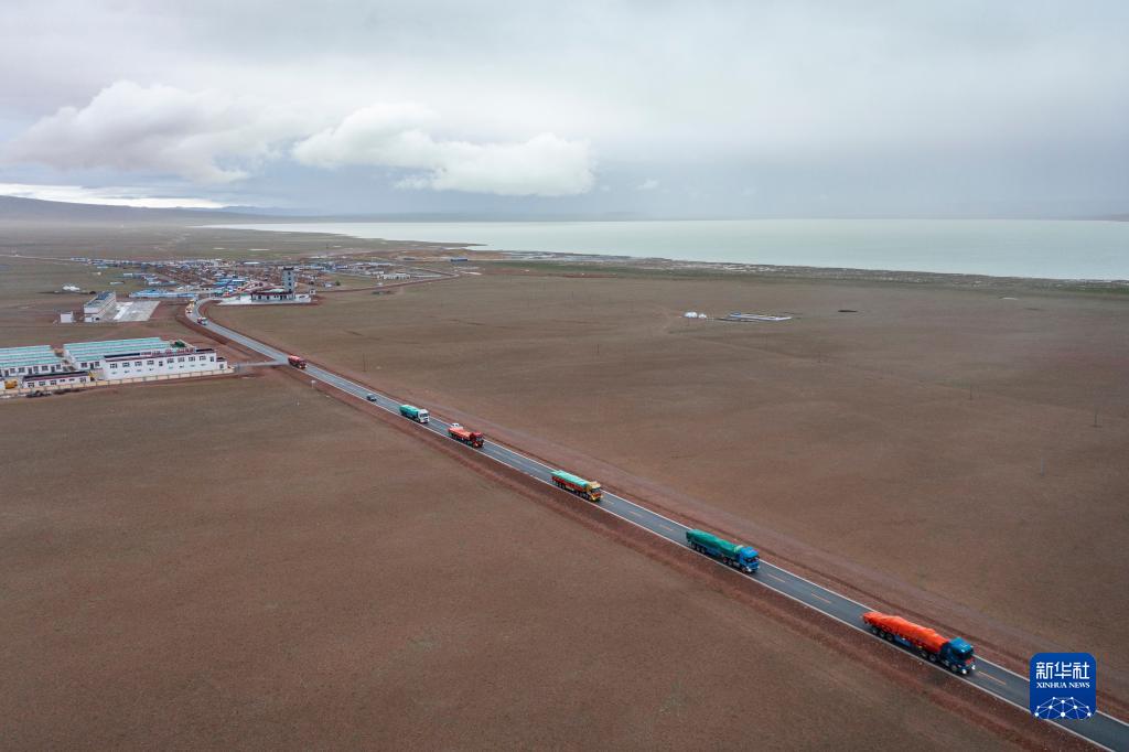 運送家具的貨車從雙湖縣多瑪鄉出發(7月15日攝,無人機照片)。