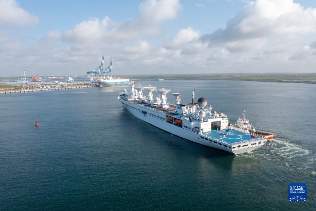 中國遠望5號船16日停靠斯里蘭卡南部漢班托塔港,進行物資補給。中國駐斯大使戚振宏和斯政府官員、中資機構代表等在碼頭迎接。