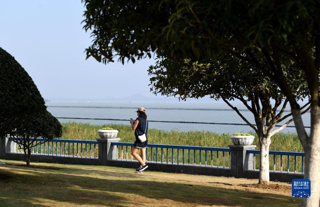 2022年9月6日,市民在巢湖岸邊的公園游玩。