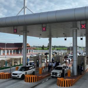 10月1日,車(chē)輛駛過(guò)柬埔寨金港高速公路金邊站。