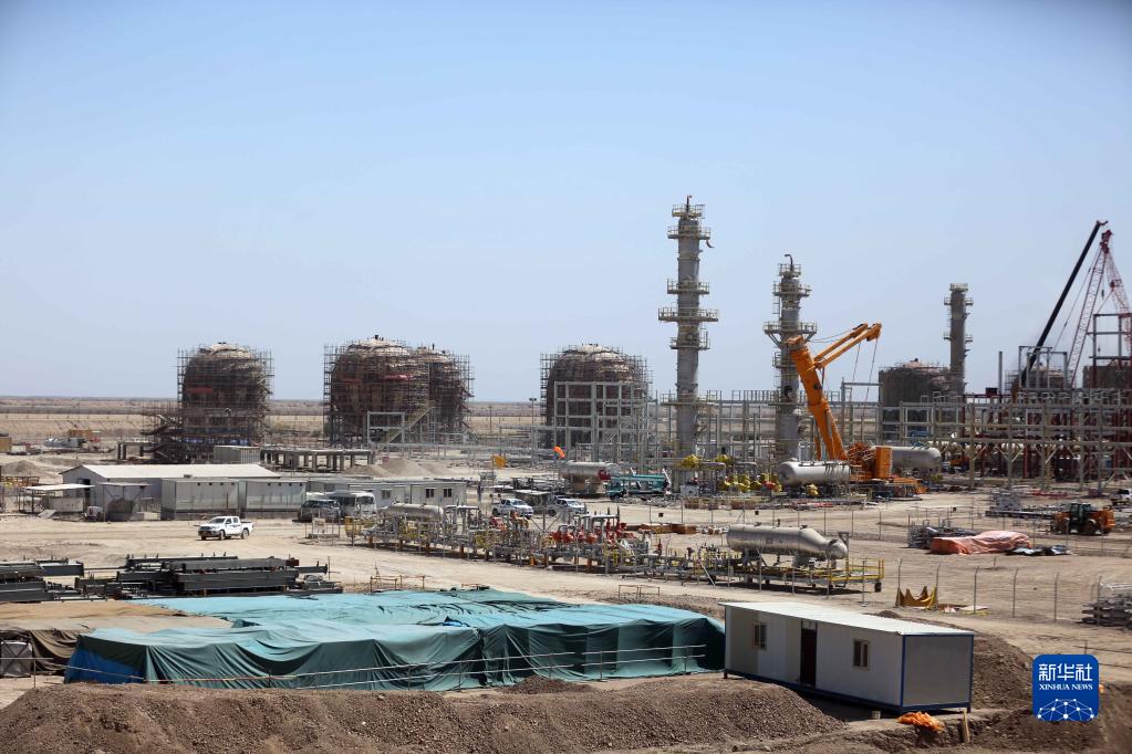這是9月25日拍攝的位于伊拉克米桑省的哈法亞油田內(nèi)一座在建的天然氣處理廠。新華社發(fā)(哈利勒·達(dá)伍德攝)