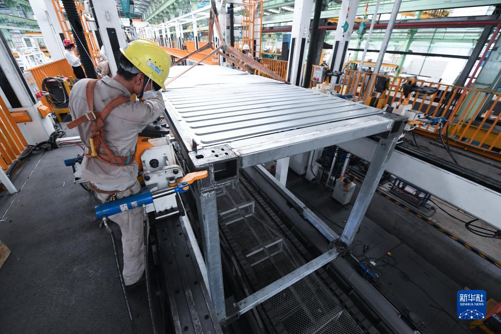 工人在智能化鋼結構模塊化生產線的總裝線上查看(2022年9月28日攝)。