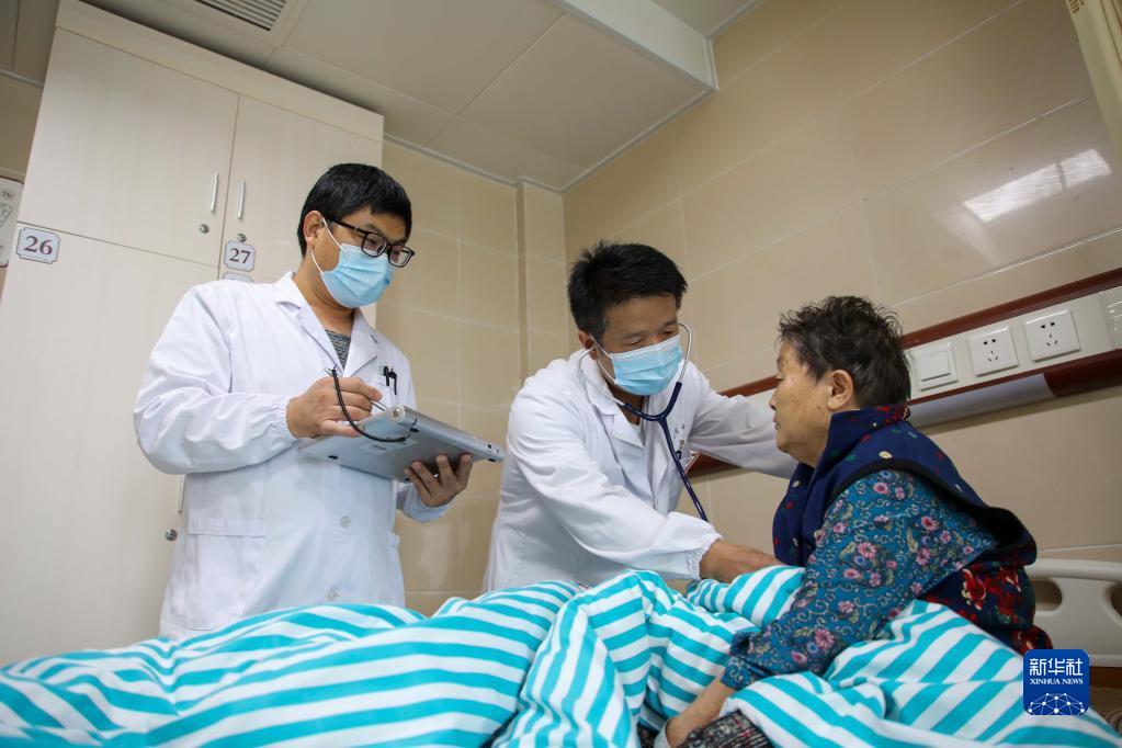 10月2日,安徽省明光市中醫(yī)院醫(yī)生在病房查房。