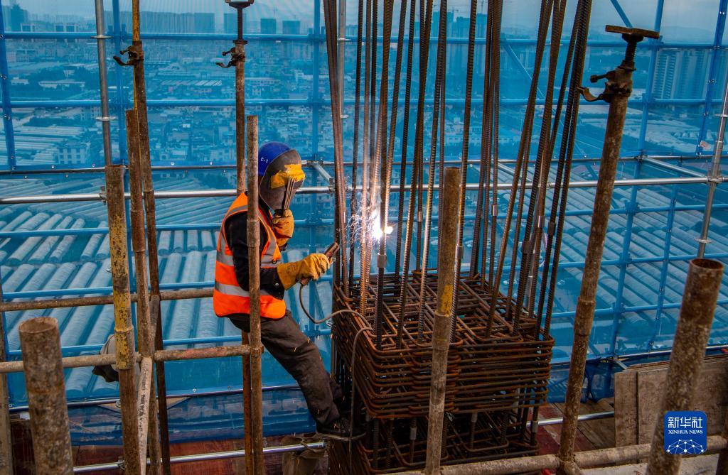 10月2日,中建七局西南公司工人孔德志在昆明斗南花卉小鎮花卉產業綜合配套服務區項目建設工地施工。