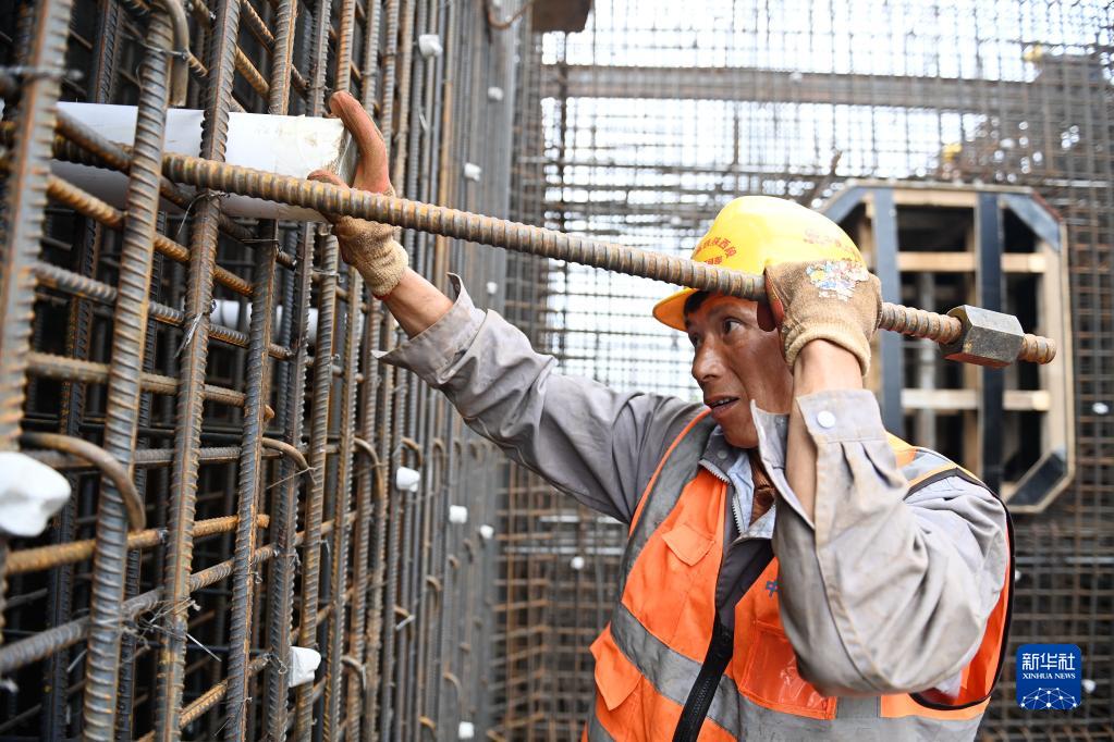 10月2日,中鐵上海工程局施工人員在位于陜西省西安市的西十高鐵跨浐河連續梁0號塊作業。