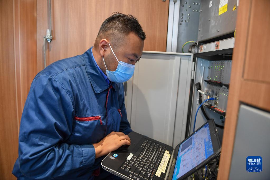 10月2日,在長春動(dòng)車運(yùn)用所,技術(shù)人員朱磊檢查列車設(shè)備。