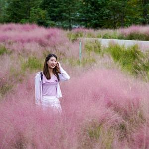 10月2日,游客穿行在疊石花谷景區(qū)內(nèi)粉黛亂子草組成的粉色花海中。