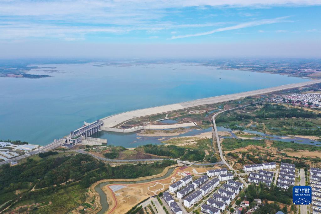 這是9月28日在河南省信陽市拍攝的出山店水庫工程(無人機照片)。