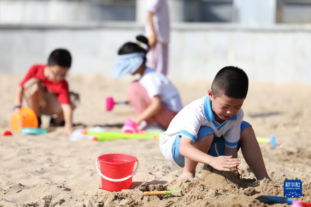 10月3日,小朋友在湖南松雅湖國(guó)家濕地公園玩耍。