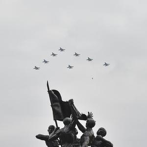 10月5日,在印度尼西亞雅加達(dá),飛機(jī)在國民軍建軍77周年慶祝活動(dòng)上表演。