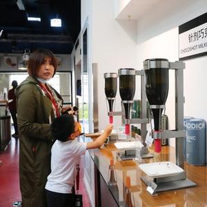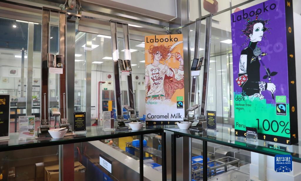 在位于上海楊浦濱江的奧地利珍得巧克力劇院拍攝的設(shè)在包裝車間上的透明巧克力品嘗區(qū)(2022年9月20日攝)。