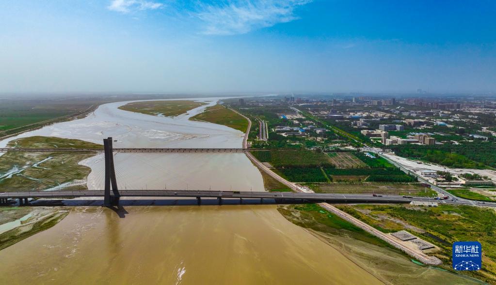 塔里木河流經新疆阿拉爾市(2022年8月2日攝,無人機照片)。