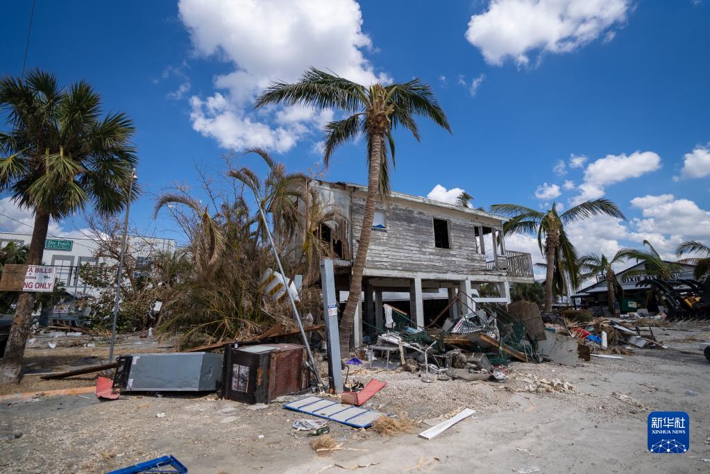 這是10月4日在美國佛羅里達州邁爾斯堡拍攝的遭颶風“伊恩”破壞的建筑。