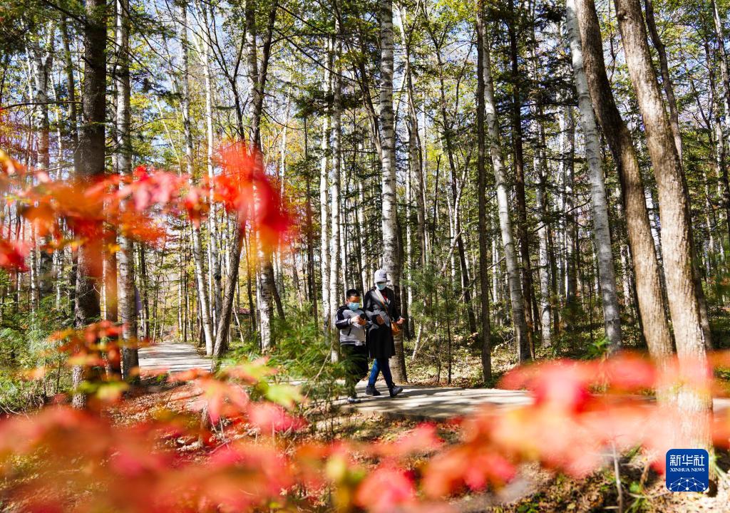 10月5日,游人在吉林紅石國家森林公園內(nèi)游覽。