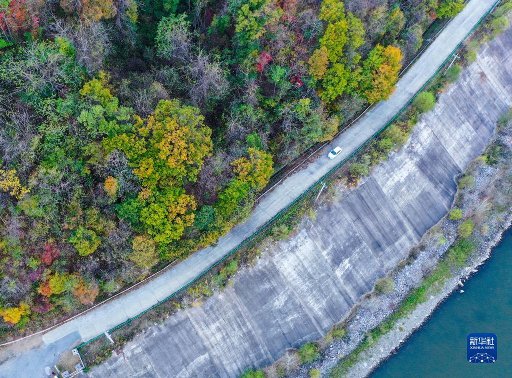 10月5日,汽車行駛在吉林紅石國家森林公園旁邊的公路上。
