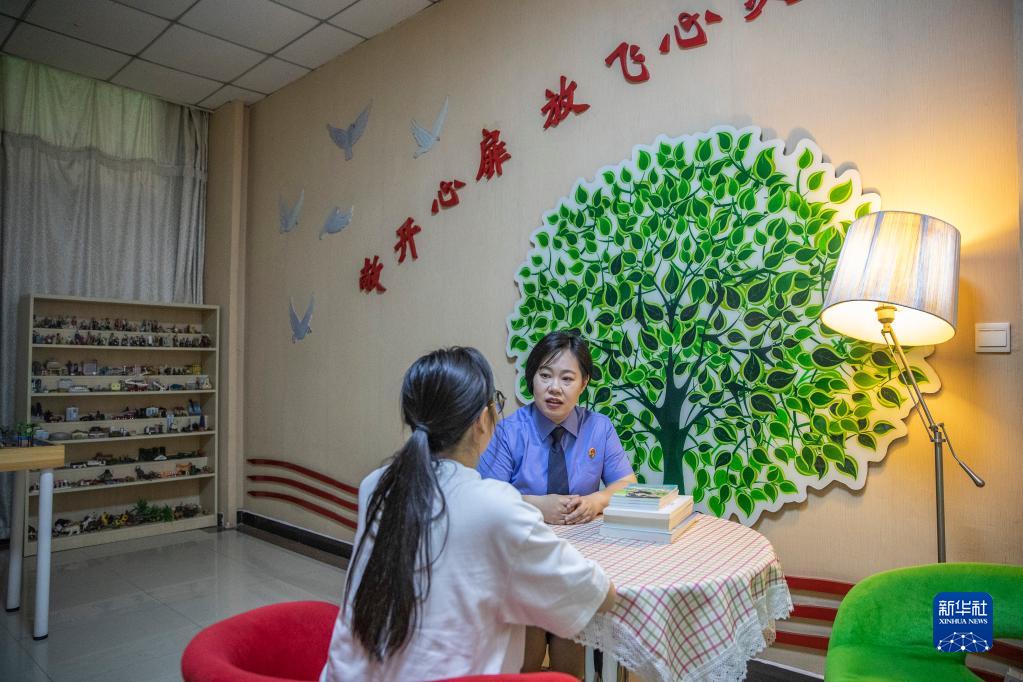 9月20日,在重慶市大渡口區(qū)人民檢察院“莎姐”談心室內,梅玫與一名前來咨詢的未成年人談心。