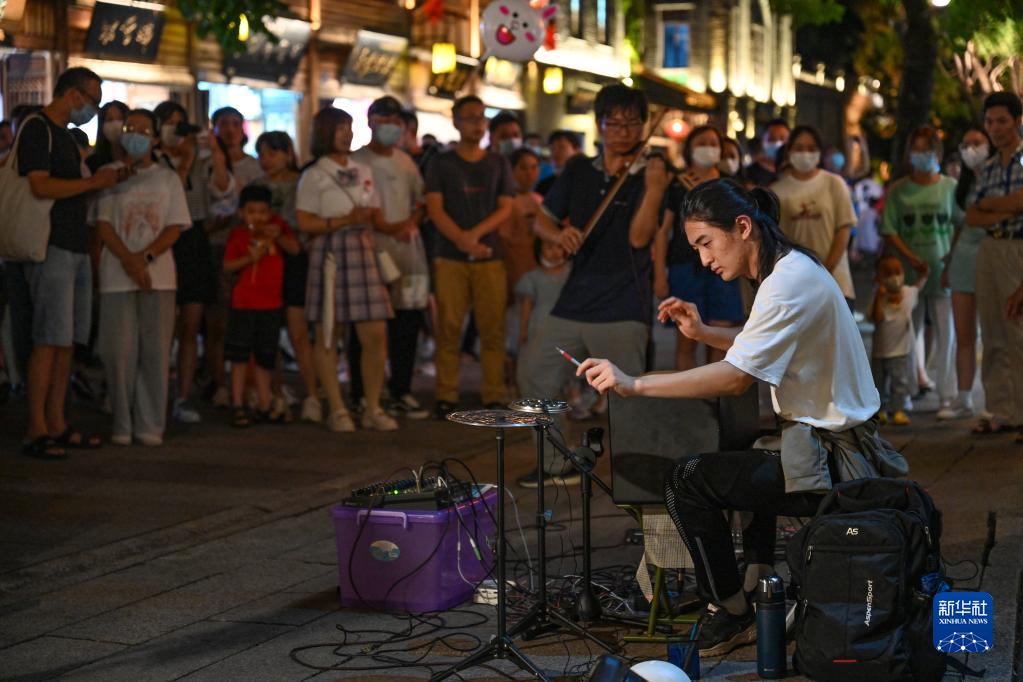 10月6日,年輕人在福州三坊七巷歷史文化街區(qū)表演音樂節(jié)目。