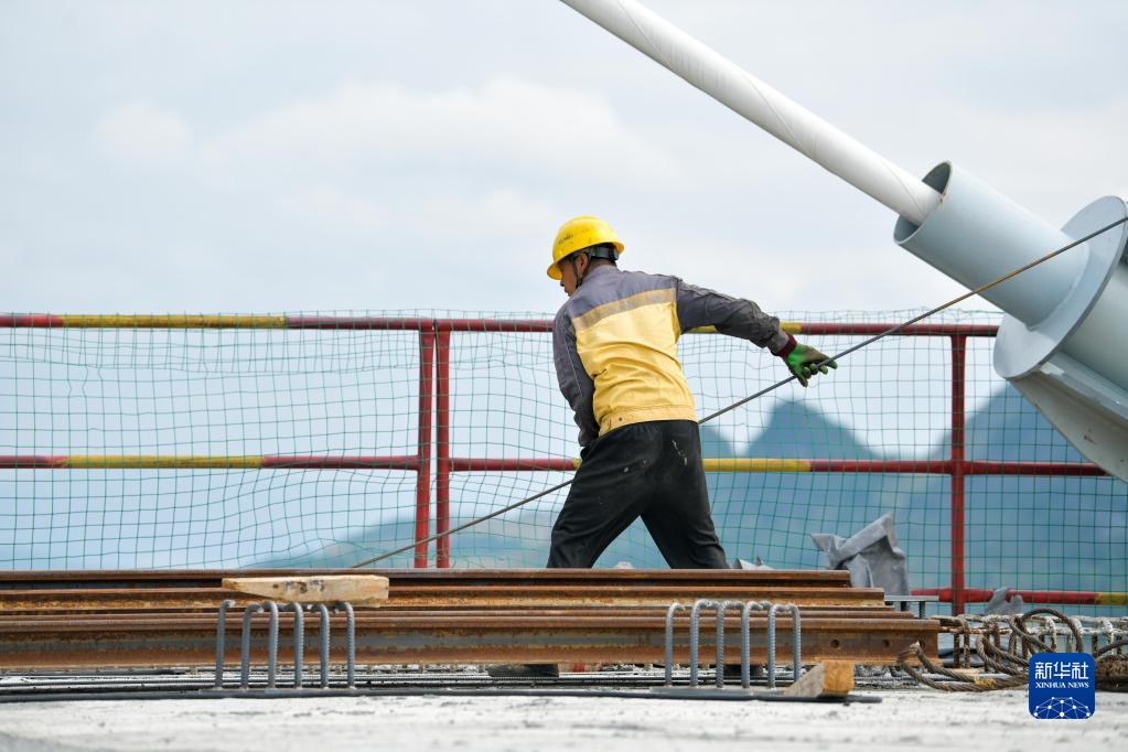 10月6日,中交二公局的工人在貴州龍里河大橋上對(duì)附屬工程施工。