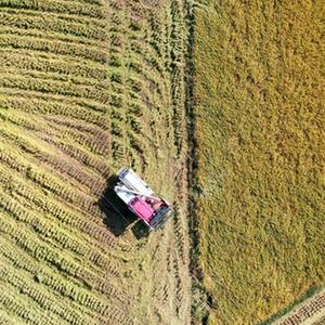 10月19日,在湖南省常德市安鄉縣三岔河鎮,農民駕駛農機收割晚稻。