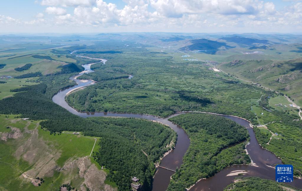 6月27日拍攝的額爾古納濕地風光(無人機照片)。