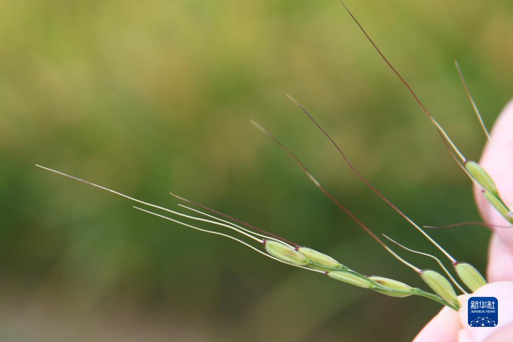 10月27日,在中科院合肥研究院智能所離子束生物工程與綠色農業研究中心的育種基地里,副研究員葉亞峰介紹野生稻的稻芒。