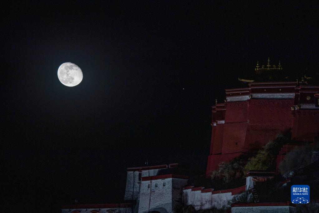 11月11日晚,一次賞心悅目的火星合月亮相天宇。這是在西藏拉薩市布達拉宮附近,記錄下的這幕“星月童話”。