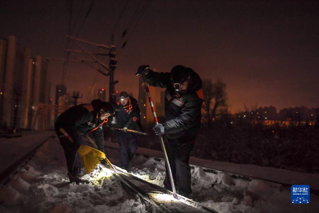 新華全媒+丨冬夜除冰雪 列車保安全