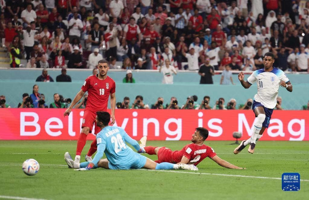 當(dāng)日,在卡塔爾多哈哈里發(fā)國際體育場(chǎng)進(jìn)行的2022卡塔爾世界杯足球賽B組比賽中,英格蘭隊(duì)以6比2戰(zhàn)勝伊朗隊(duì)。
