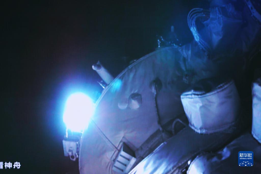 11月30日在酒泉衛星發射中心拍攝的神舟十五號載人飛船成功對接于空間站天和核心艙前向端口的畫面。