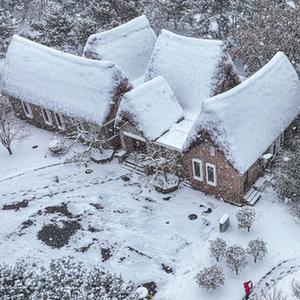 11月30日,在浙江省湖州市長興縣和平鎮,大崗山上的茶園被白雪覆蓋(無人機照片)。