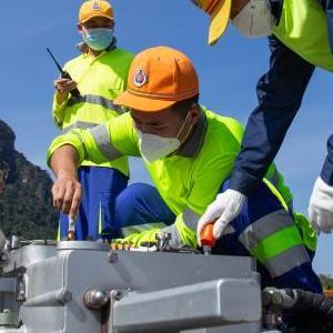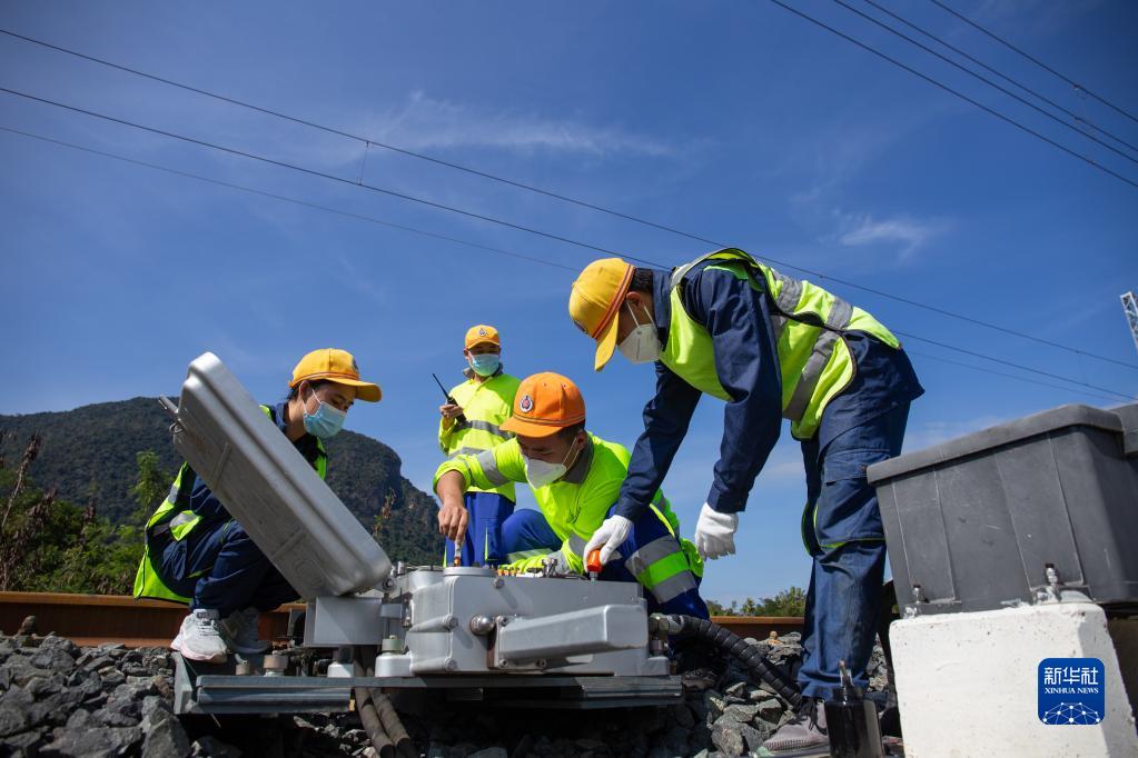 12月1日,在老撾瑯勃拉邦,中老鐵路雙方員工共同維護線路。